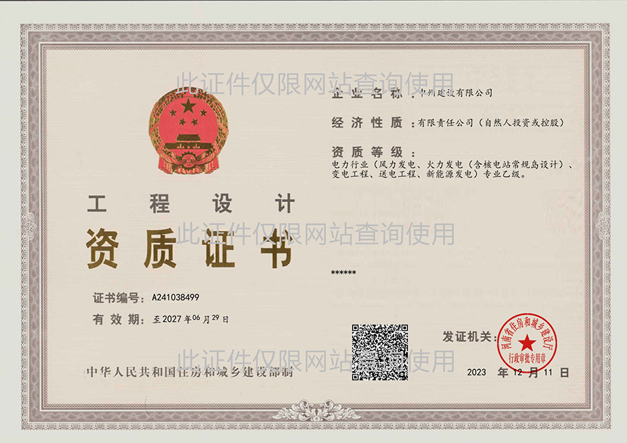 工程設(shè)計資質(zhì)證書(電力行業(yè)類)