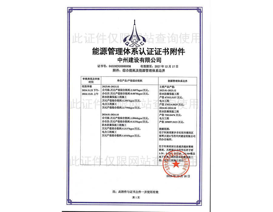 能源管理體系認(rèn)證證書附件