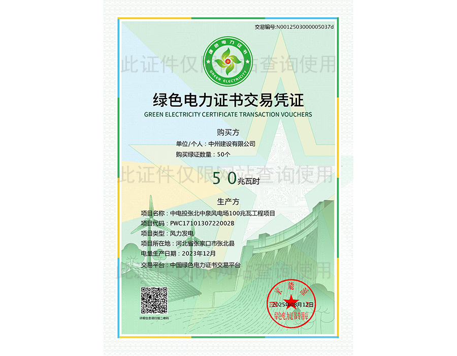 綠色電力證書交易憑證